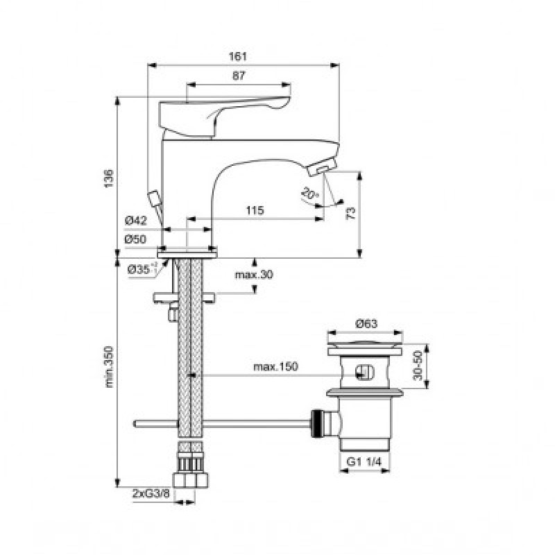 BATERIE LAVOAR ALPHA CU VENTIL METALIC