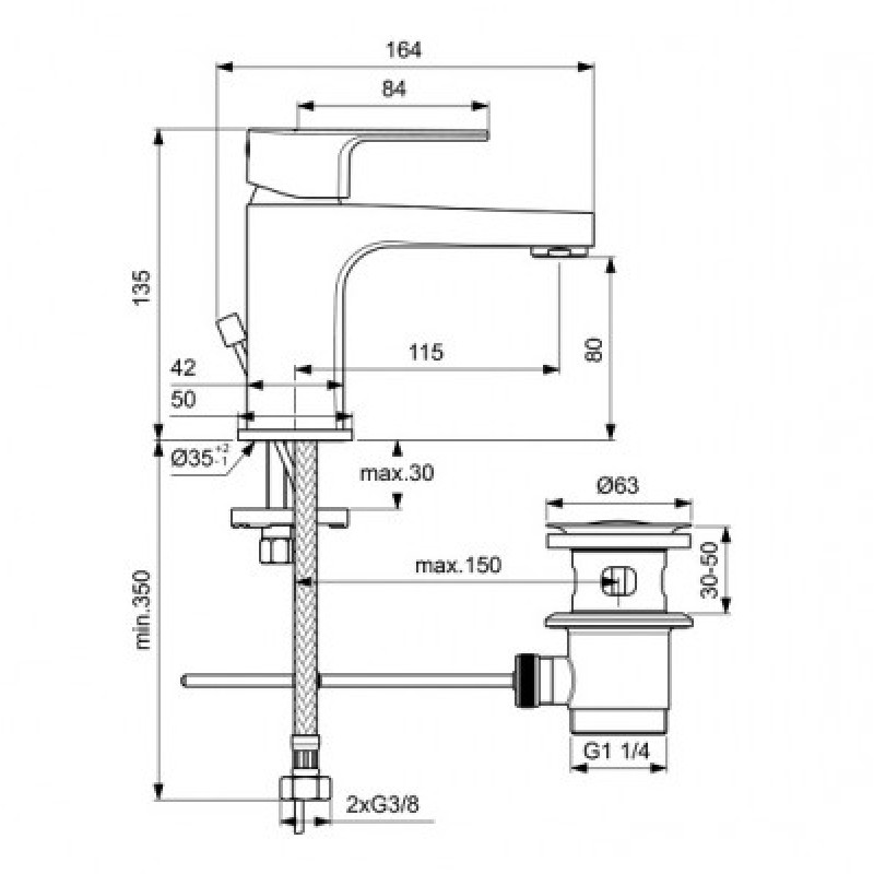 BATERIE LAVOAR CERAFINE D H80 CU VENTIL METALIC