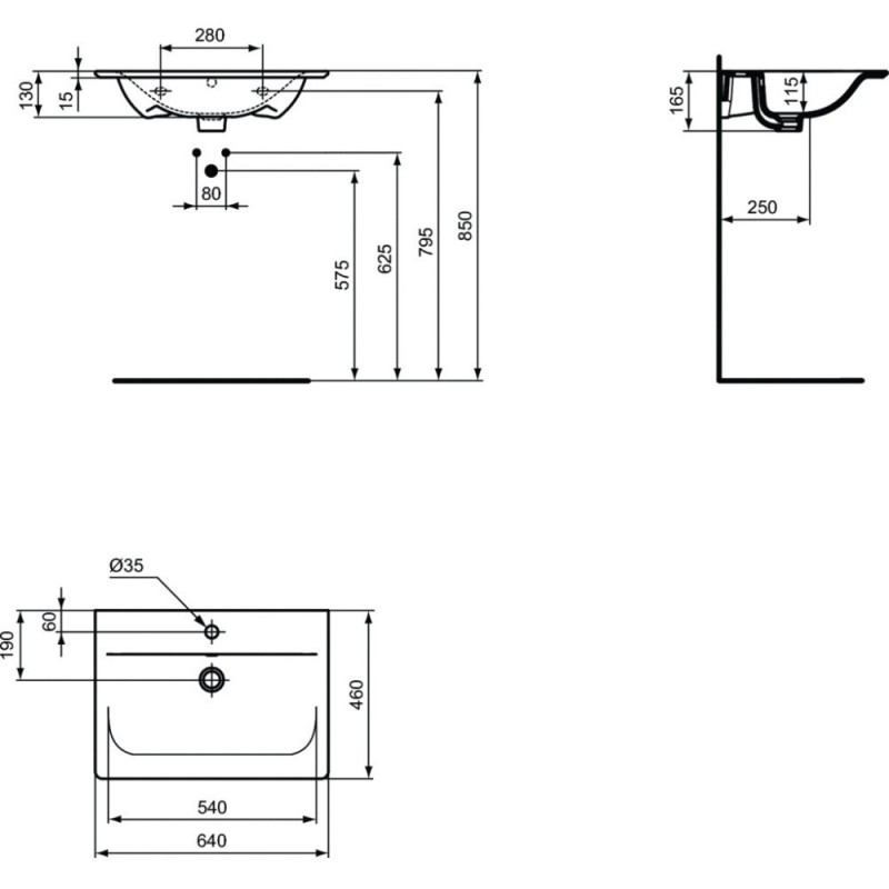 LAVOAR CONNECT AIR 64 CM PENTRU MONTAJ PE MOBILIER , SILK BLACK