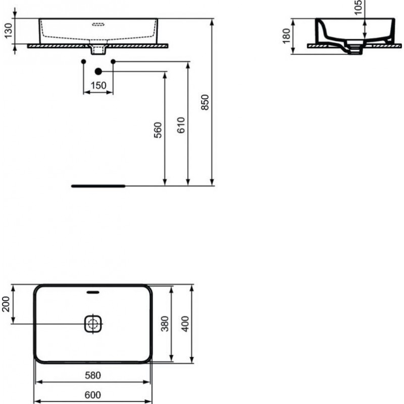 LAVOAR STRADA II 60X40 MONTAJ PE BLAT, FARA ORIFICIU BATERIE, CU PREAPLIN