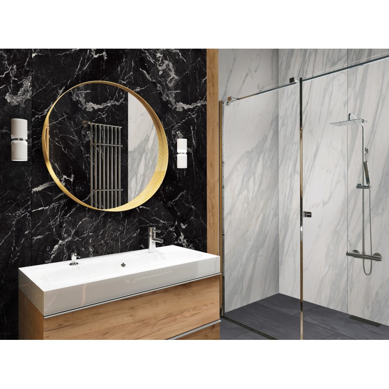 Panoul decorativ impermeabil Rocko Tiles Venato Nature R102 reproduce perfect culoarea și structura marmurei albe prafuite cu un desen clar, gri,  al venelor. Aspectul perfect al panourilor de perete SPC este rezultatul scanării suprafeței materialului in marmură și imprimare digitală, reproducând perfect natura. Un avantaj suplimentar al plăcilor de perete este faptul că structura lor la atingere seamănă cu rugozitatea pietrei. Plăcile sunt igienice, ușor de întreținut. Ele sunt ideale pentru instalarea în baie și bucătărie, datorită proprietăților lor impermeabile. Instalarea simplă îl face ideal pentru renovări rapide sau finisaje interioare. Fără praf, resturi, zgomot, pentru că pot fi așezate pe plăci ceramice vechi.