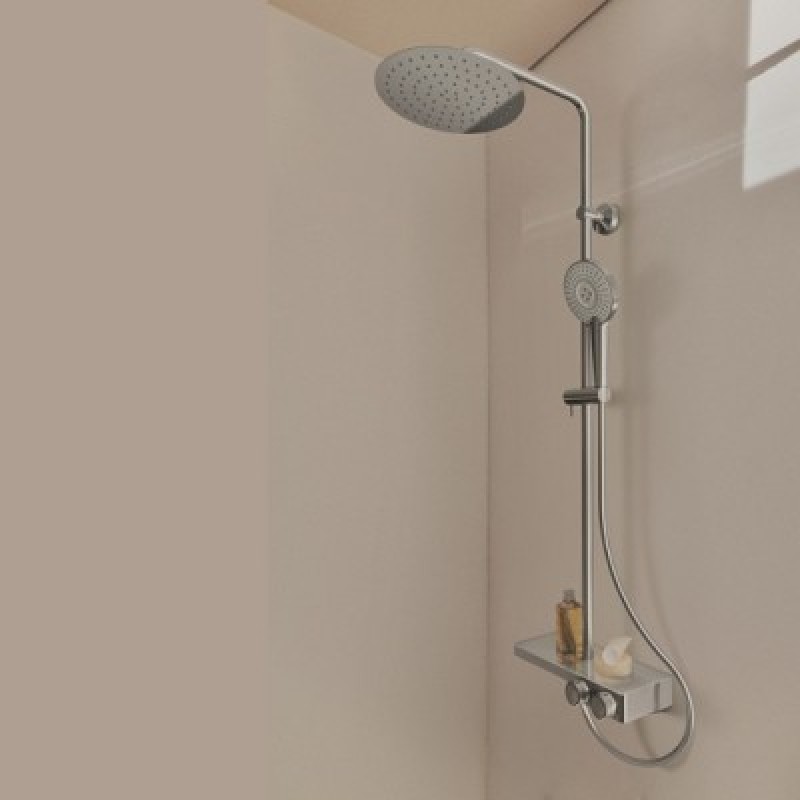 SISTEM DUS CERATHERM S200, TERMOSTATIC, ETAJERA STICLA ALBA, CAP DUS METALIC DIAM. 25 CM, PARA DUS IDEALRAIN EVOJET ROUND 12.5 CM